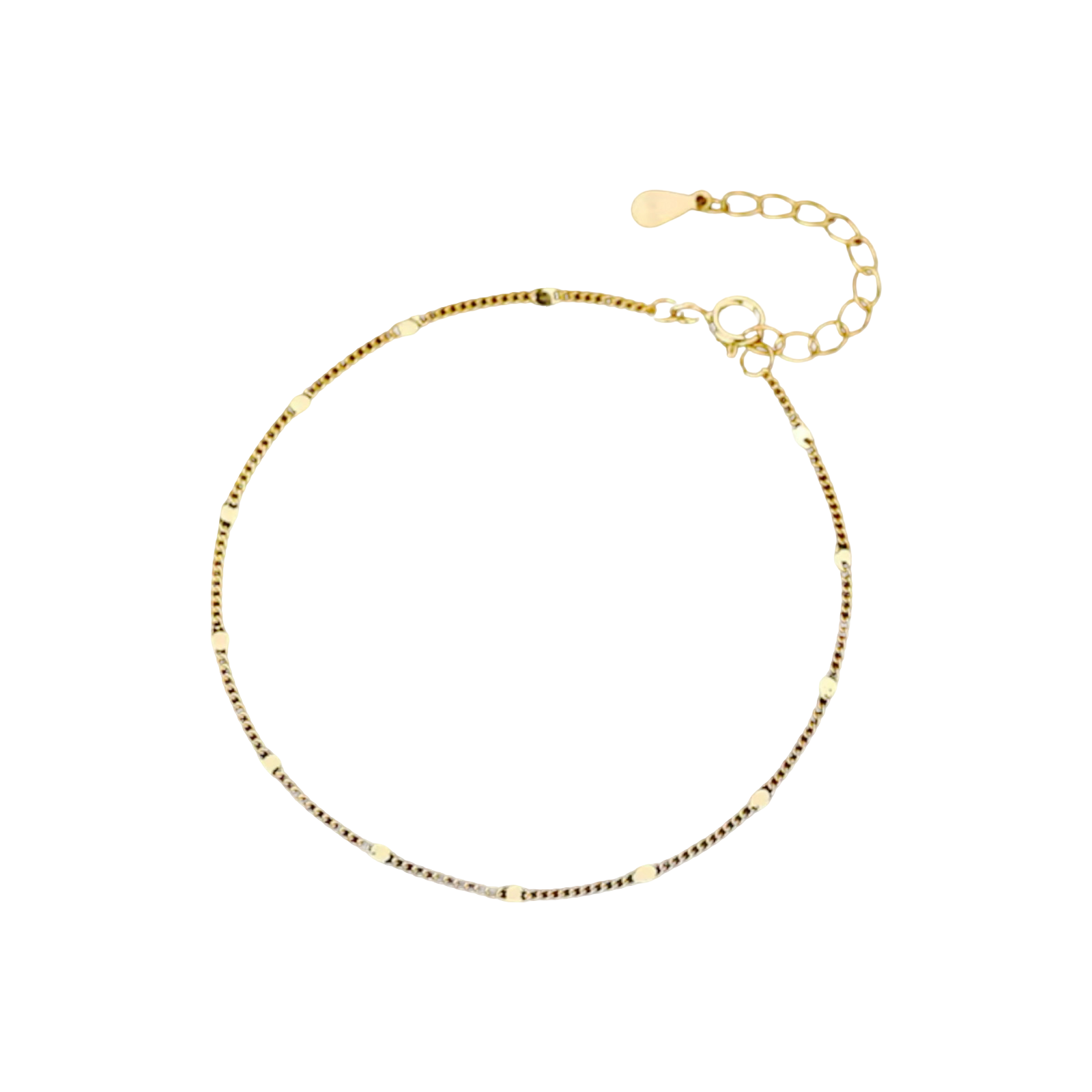 An elegant chain bracelet crafted for timeless sophistication. Available in sterling silver or 18K gold plating, this delicate piece adds a refined touch of luxury to any look. Its lightweight design makes it perfect for effortless everyday wear or layered styling.