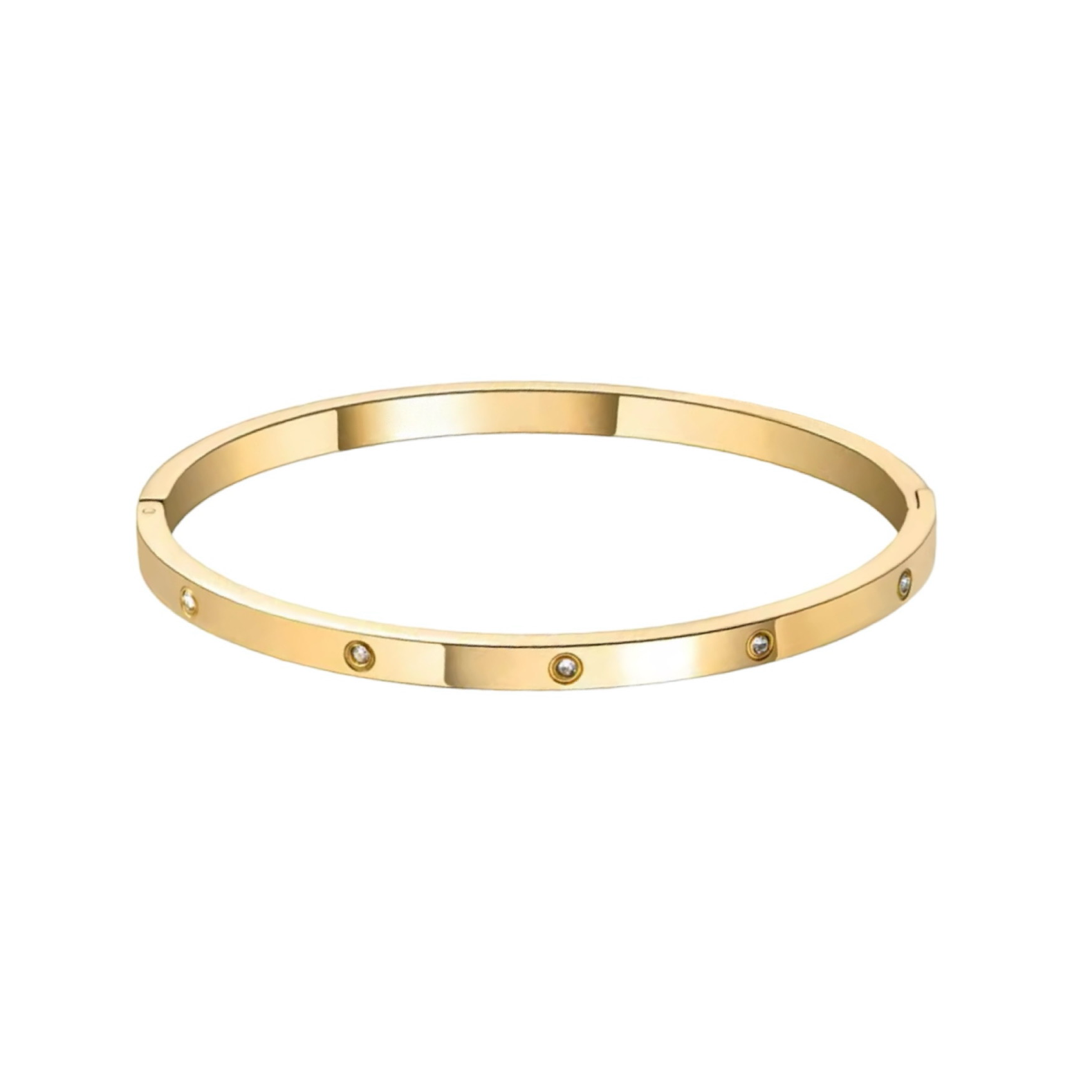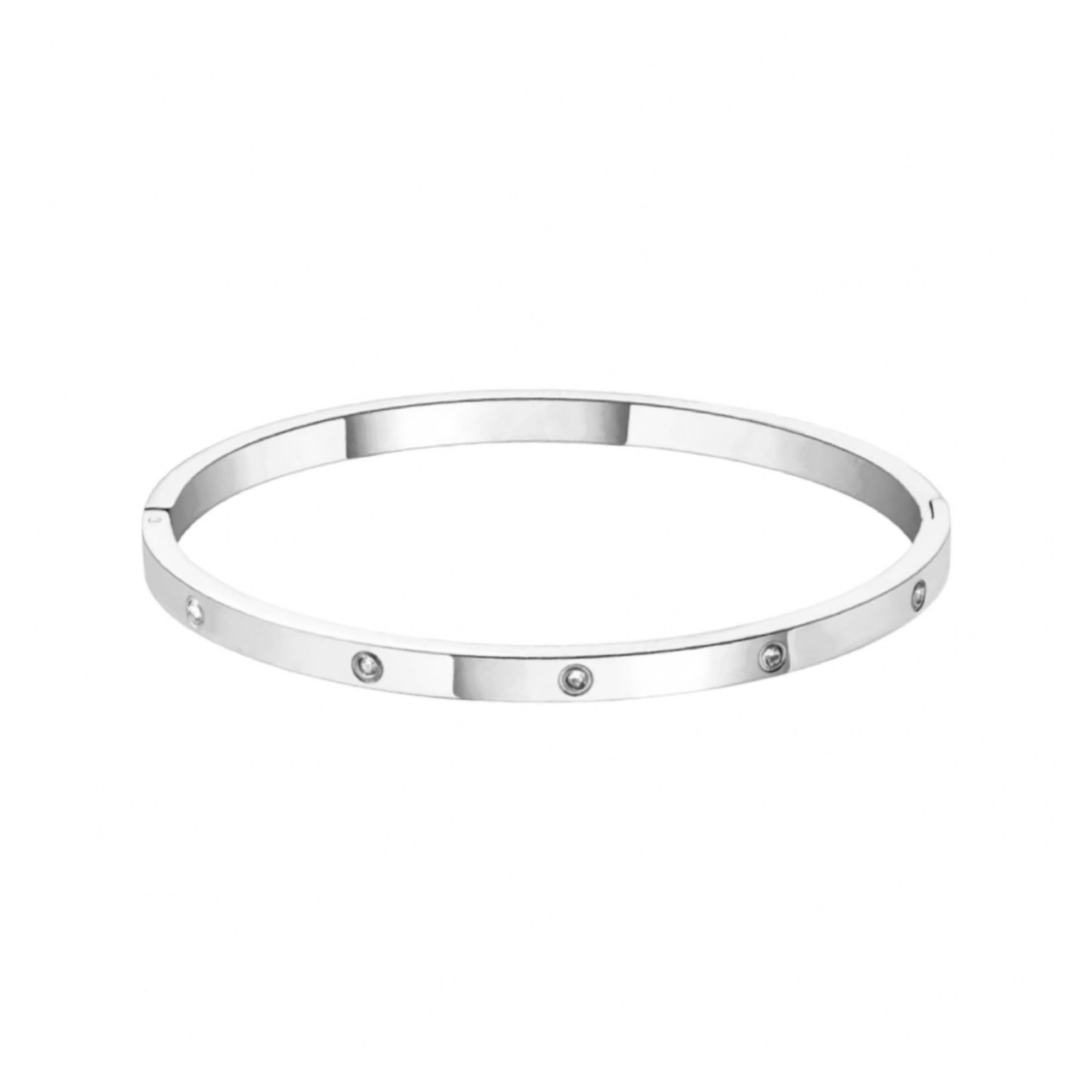 Simple, modern and elegant — our Flat Zircon Bangle adds a refined touch to your everyday stack. Crafted from durable stainless steel and finished in your choice of silver or triple gold plating, this minimalist bangle features AAA-grade cubic zirconia spots for a subtle sparkle that catches the light.