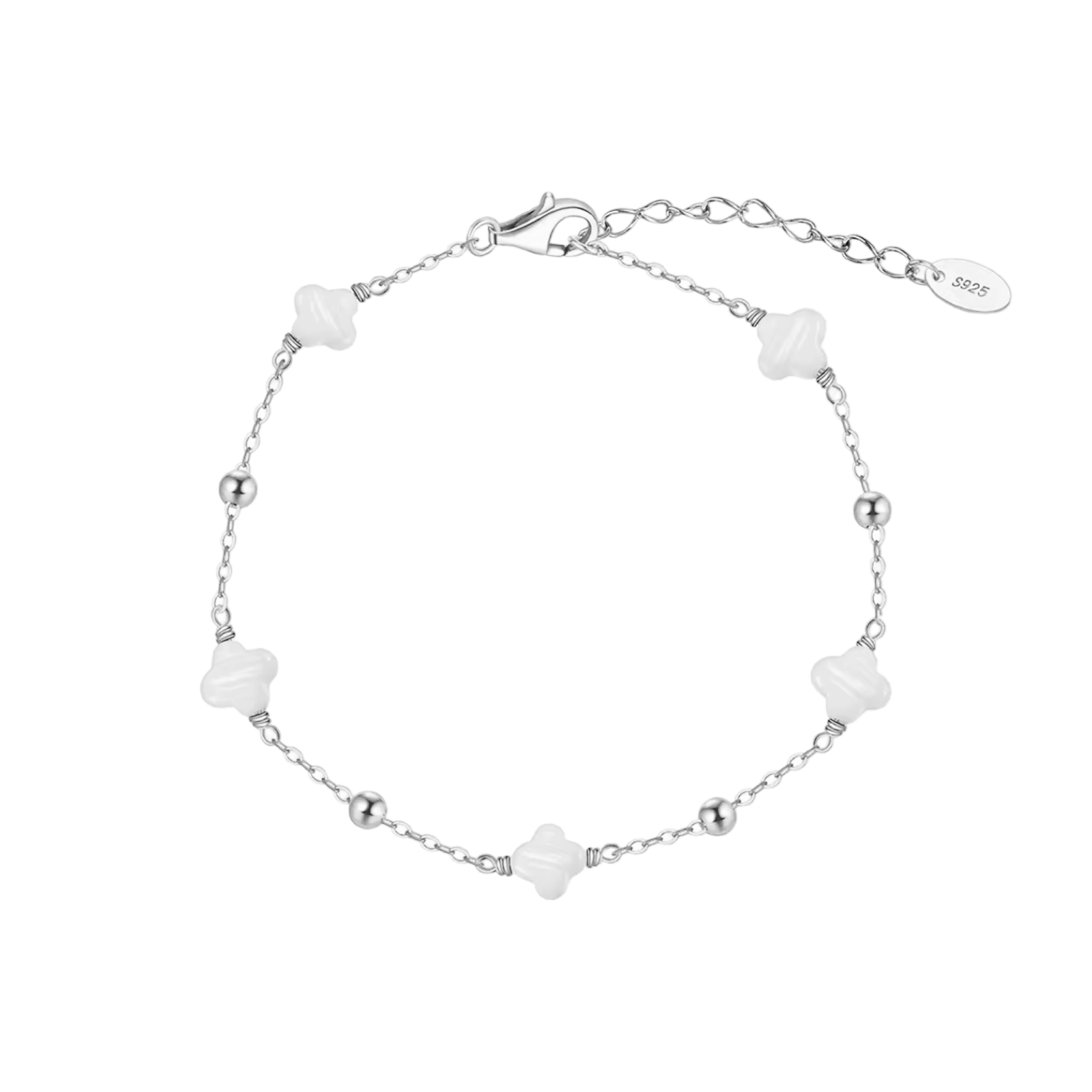 Elegant, feminine, and beautifully detailed — our Flower Clover Beaded Chain Bracelet - available in 925 Sterling Silver or 14K Gold Plated - features dainty 4-leaf clover shell charms paired with fine beads along the chain, offering a soft and graceful design that’s easy to wear every day.
