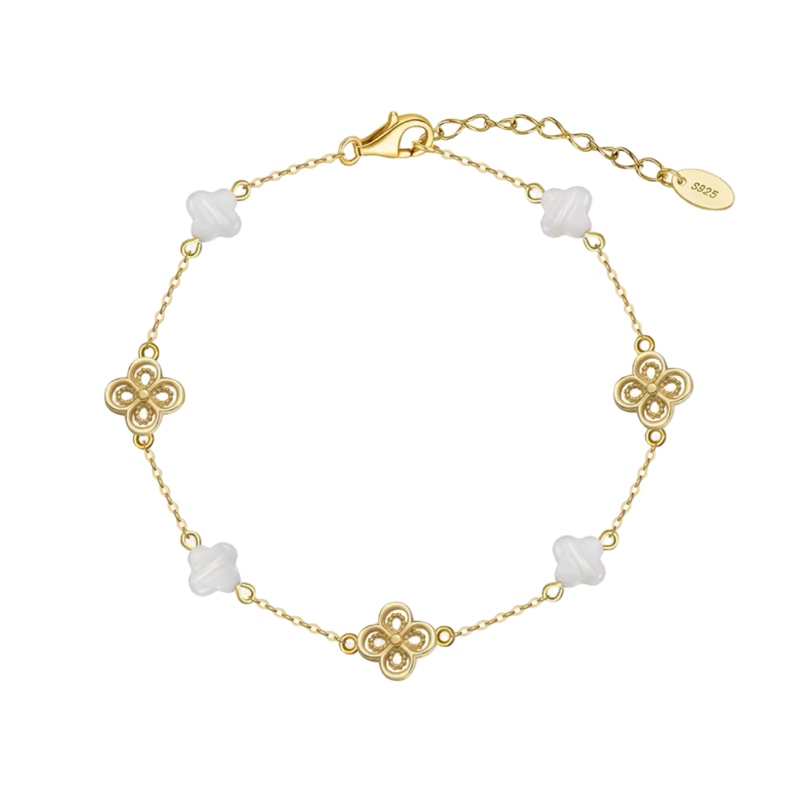 Add a touch of elegance and charm to your wrist with our Clover Charm Shell Bracelet, available in 925 Sterling Silver or 14K Gold Plated. This refined piece features alternating 6mm shell details and delicate 8mm clover-shaped charms, creating a minimalist yet sophisticated design that feels effortlessly feminine.